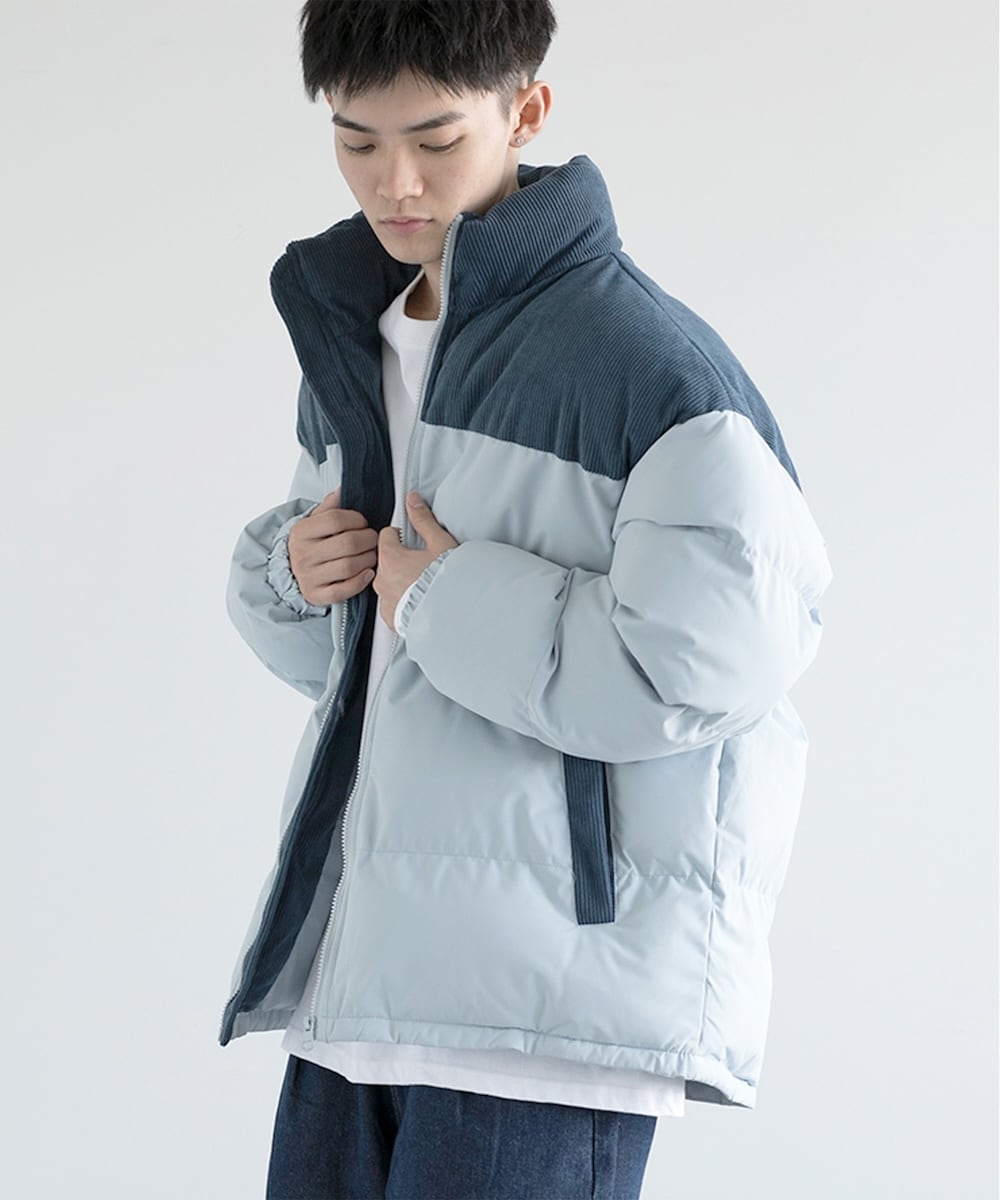 『シンプルでありながらも印象的なデザインが特徴です。肩部分にはコーデュロイ素材を採用し、さりげないアクセントをプラス。』