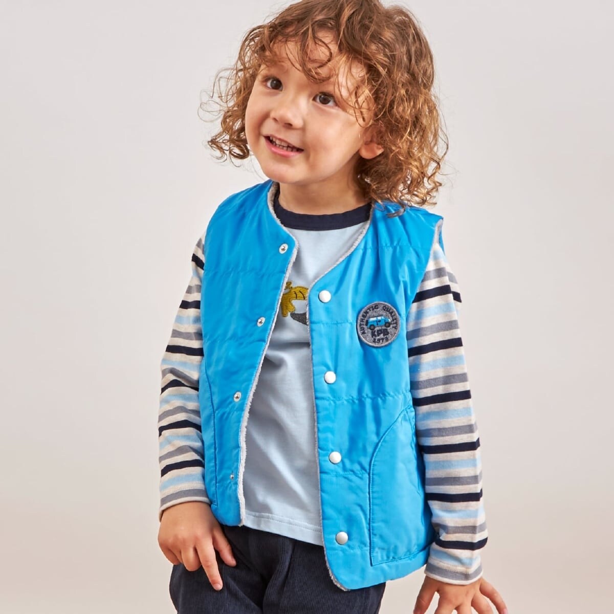 リバーシブル仕様の中綿ベスト。
