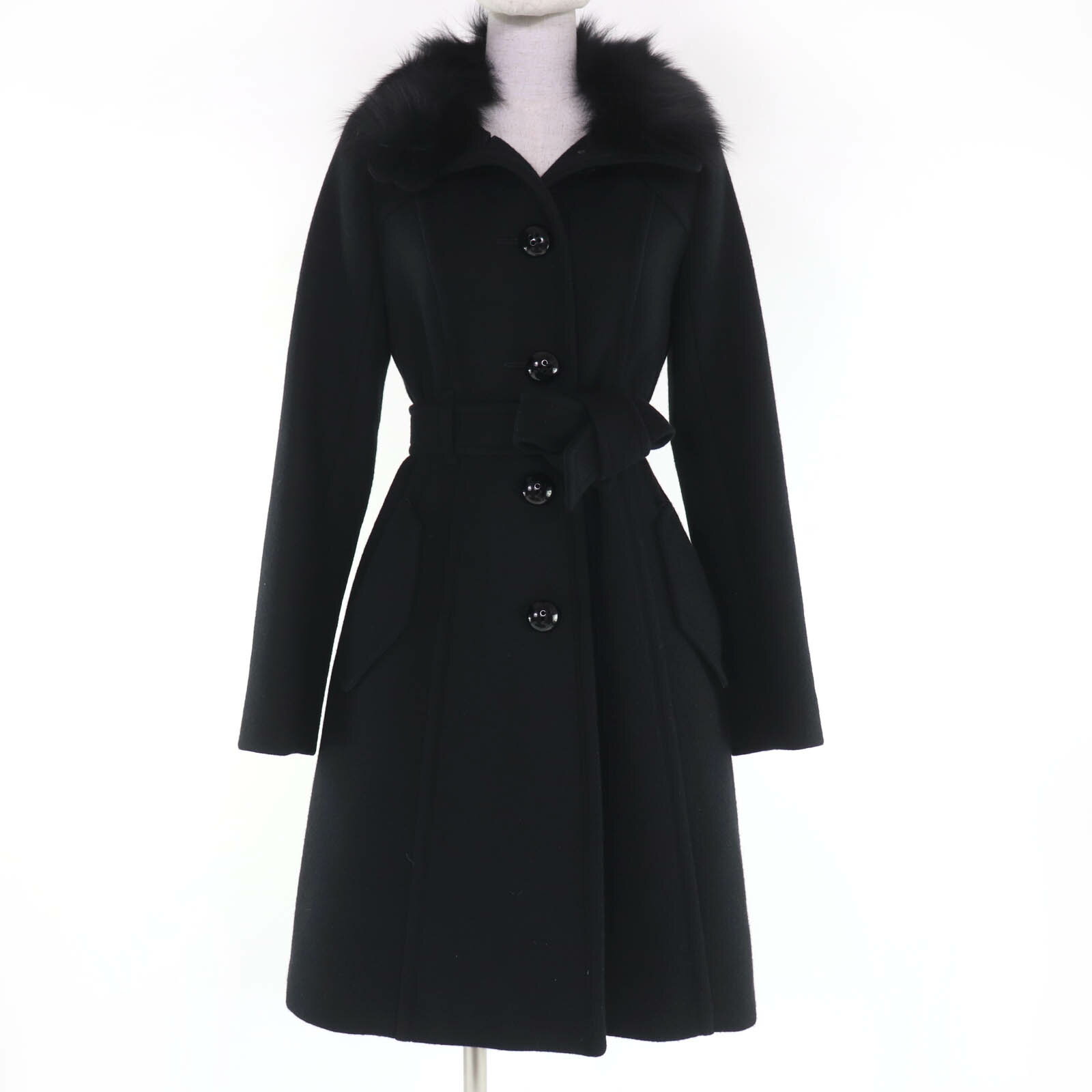 美品□BURBERRY BLACK LABEL バーバリーブラックレーベル 襟ラビットファー ダブルブレスト エンブレムボタン ピーコート ネイビー M 正規品 メンズ【中古】