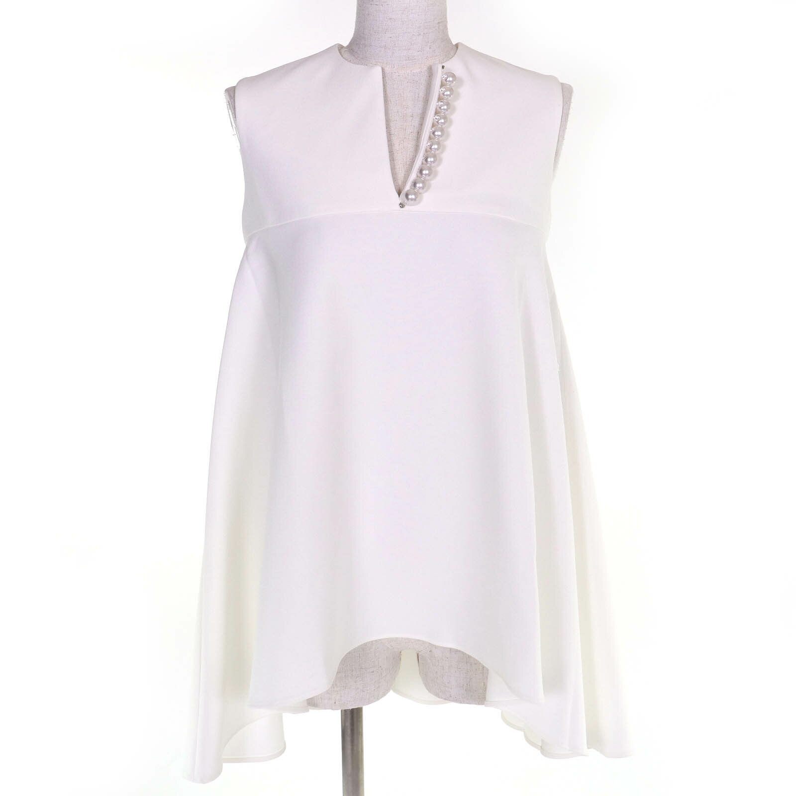 未使用品☆YOKO CHAN ヨーコチャン 2023年製 YCB-223-373 フェイクパール付 ノースリーブ チュニック ホワイト 38 日本製 正規品 レディース【中古】