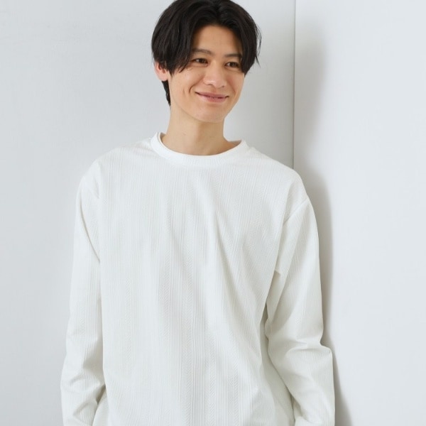 凹凸感のある縦柄編みカットソーは、肌離れが良く快適な着心地が特徴。