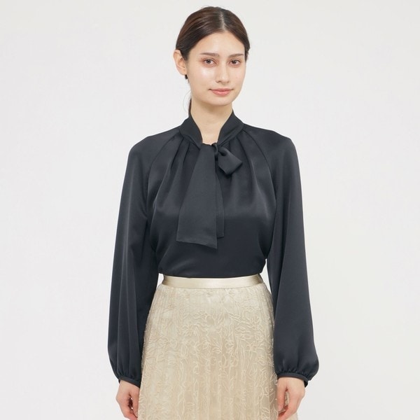 素材のエレガントさを活かしたボウタイブラウスです。