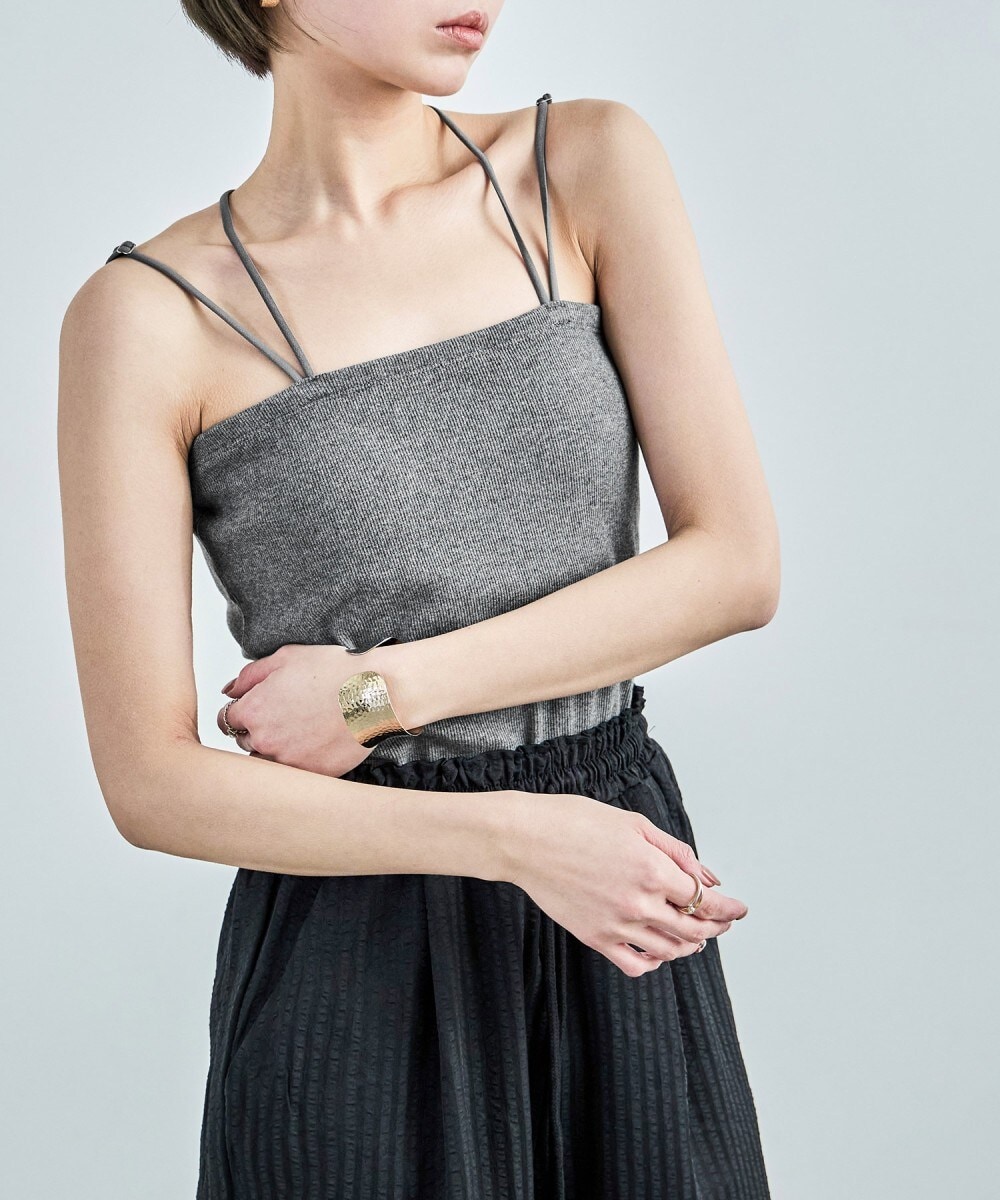 レイヤードスタイルに欠かせないカップ付きのキャミソールは何着あっても便利。