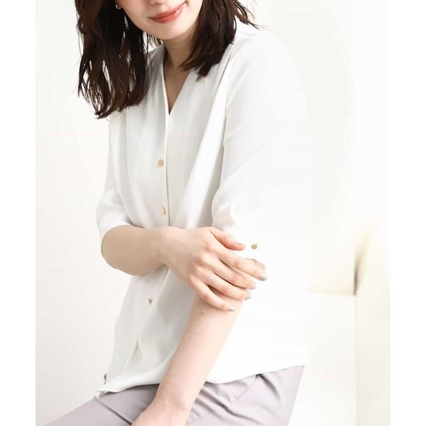 【洗える】スキッパ―五分袖ブラウス(XS~L)