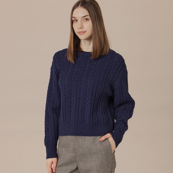 上品なミニケーブル編みのニットプルオーバーです。ベーシックなデザインでありながら表情豊かで、トラディショナルな雰囲気も演出できます。コンパクトな着丈でエレガントな装いになるアイテムです。同素材のプルオーバー(品番:G5N22619)もご用意しております。
