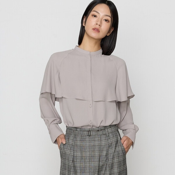 肩から流れるようなケープブラウスが特長のデザインブラウスです。