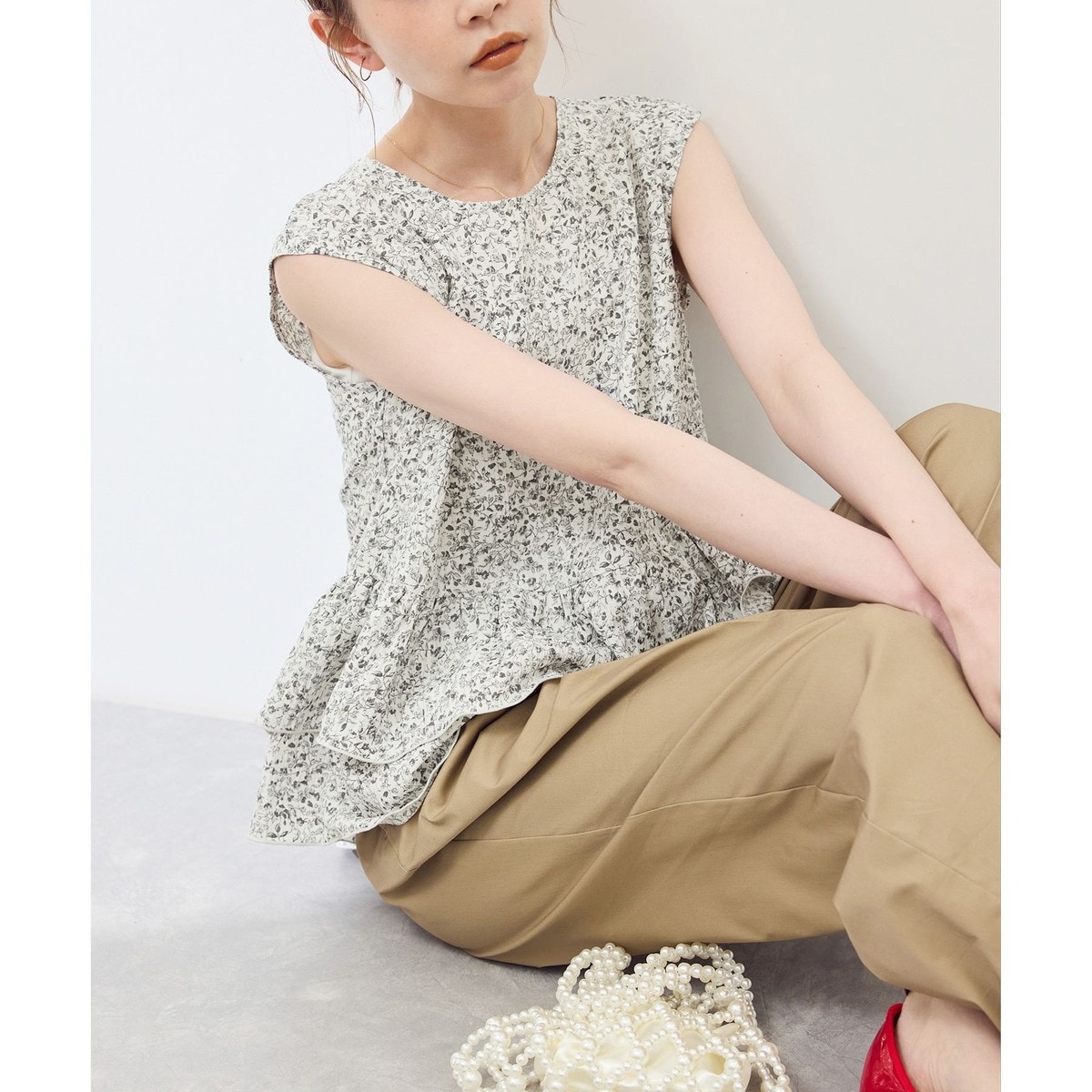 ・愛らしい小花プリントのプルオーバーブラウス。