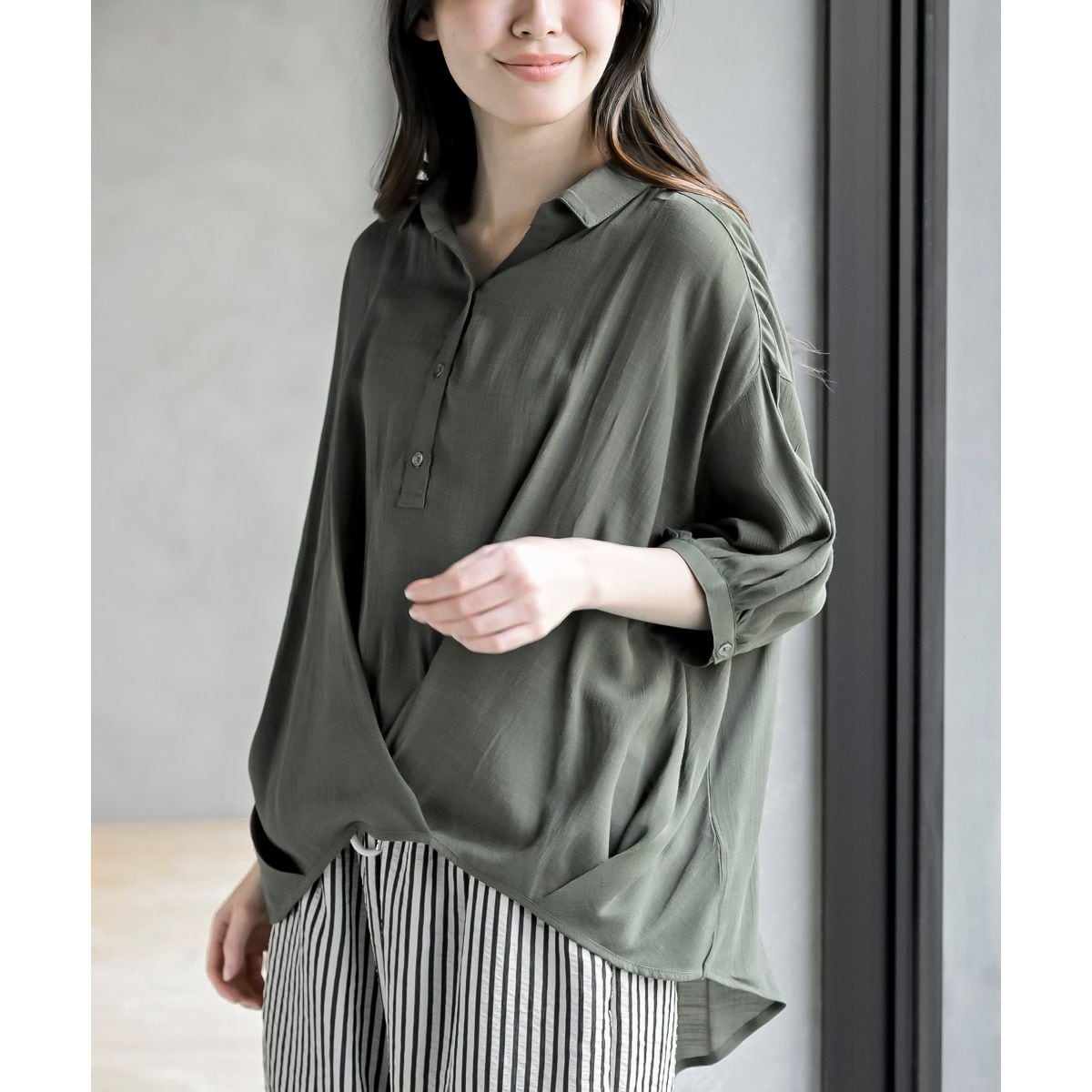 【タックブラウス】ストライプ シャツ レディース
