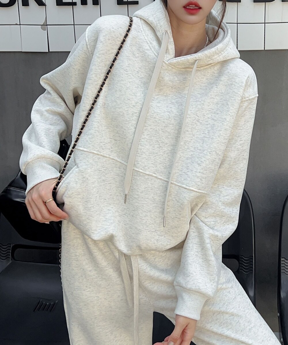 ゆったりとしたオーバーサイズのシルエットで、リラックス感たっぷりのベーシックフーディー。