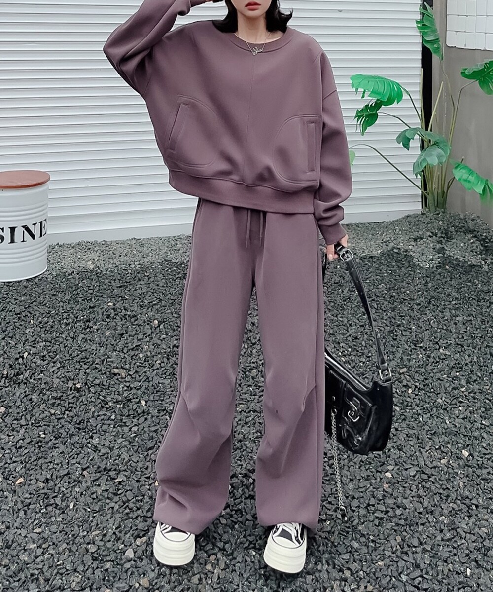 シンプルでリラックス感のあるゆったりシルエットが特徴のラウンジスウェット。程よい厚みのある素材で、肌触りが良く、一日中快適に過ごせます。デザインは無駄を省き、どんなスタイルにも合わせやすい落ち着いたカラー展開で、重ね着にも最適です。カジュアルな日常使いからリラックスしたいおうち時間まで、幅広く活躍する万能アイテム。シンプルながらも上質な仕上がりで、シーズンを問わず愛用できる一着です。
