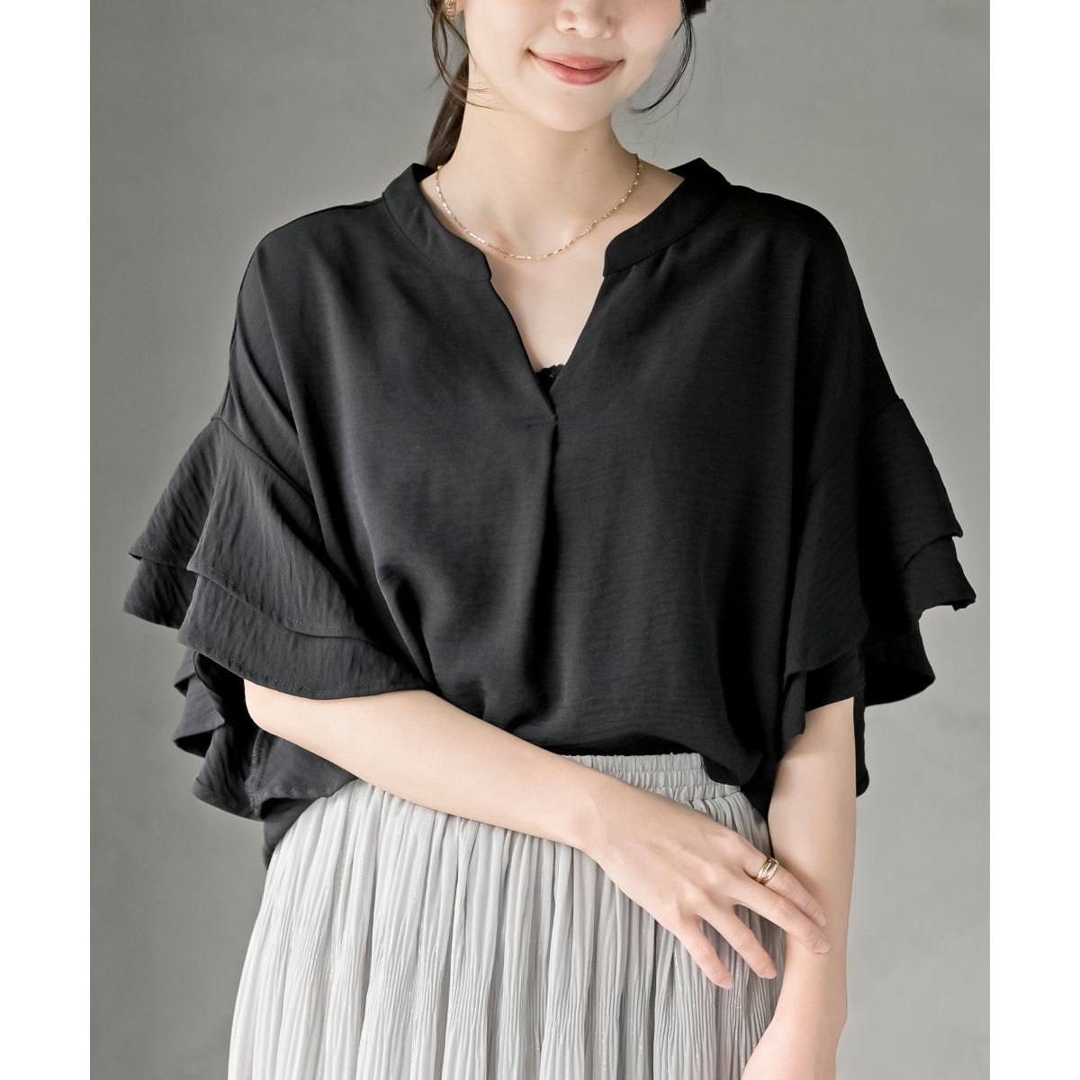 トップス ポリエステル素材 / 無地 / フリル / 半袖 / 5分・7分袖 / フレアスリーブ / 洗える / オープンカラー / その他衿型 / Vネック / その他衿ぐり / パーティー・結婚式・二次会 / セレモニー・入学式・卒業式 / レギュラー丈(トップス)