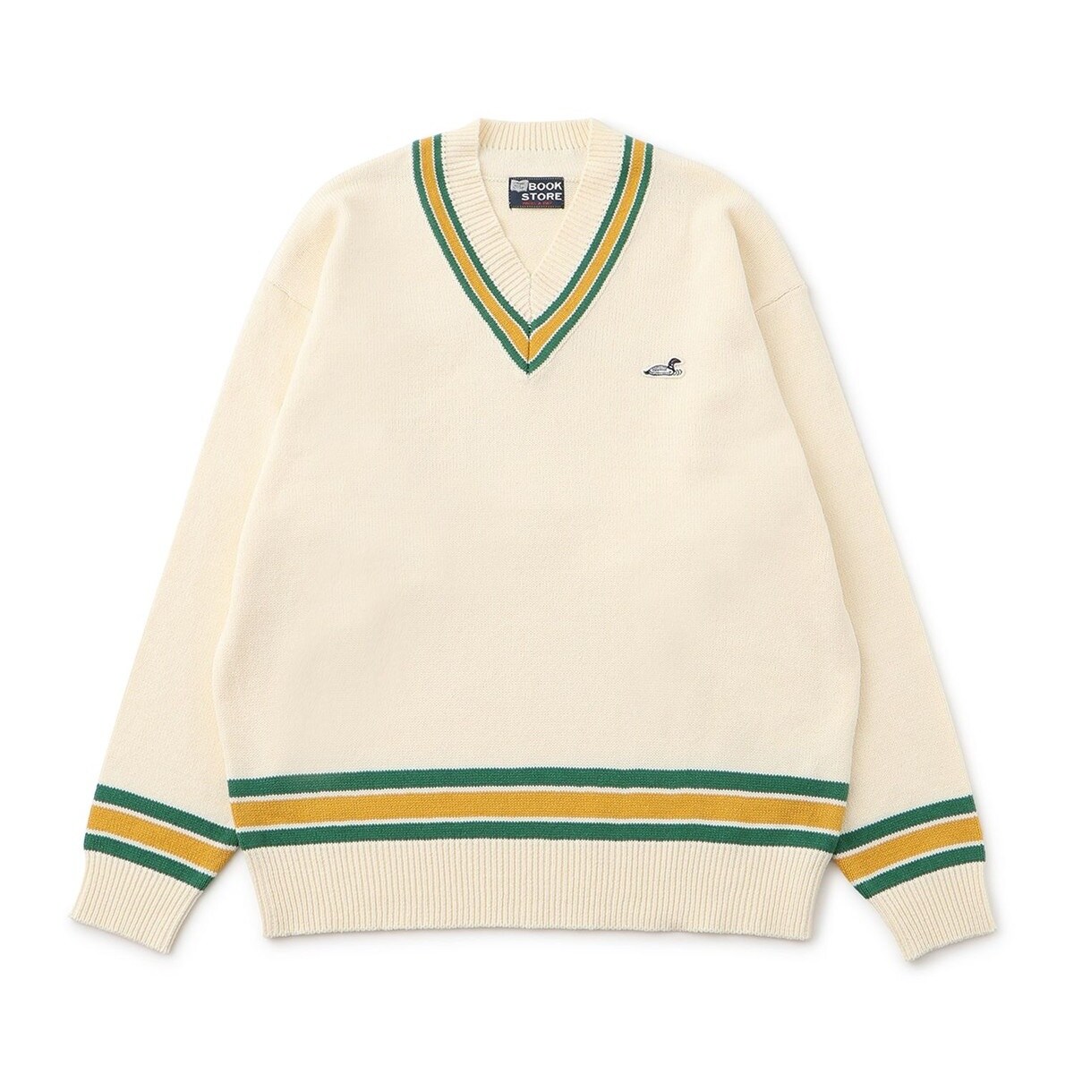 胸元のダックモチーフのワッペンと、BOOKSTOREネーム付きでプレッピーな印象に。
