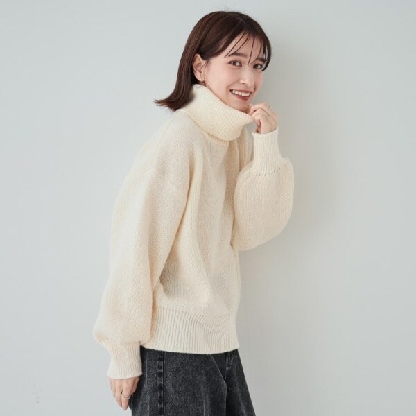 【S-LL】さりげないラメ感 配色ジャカード タートルネックニット