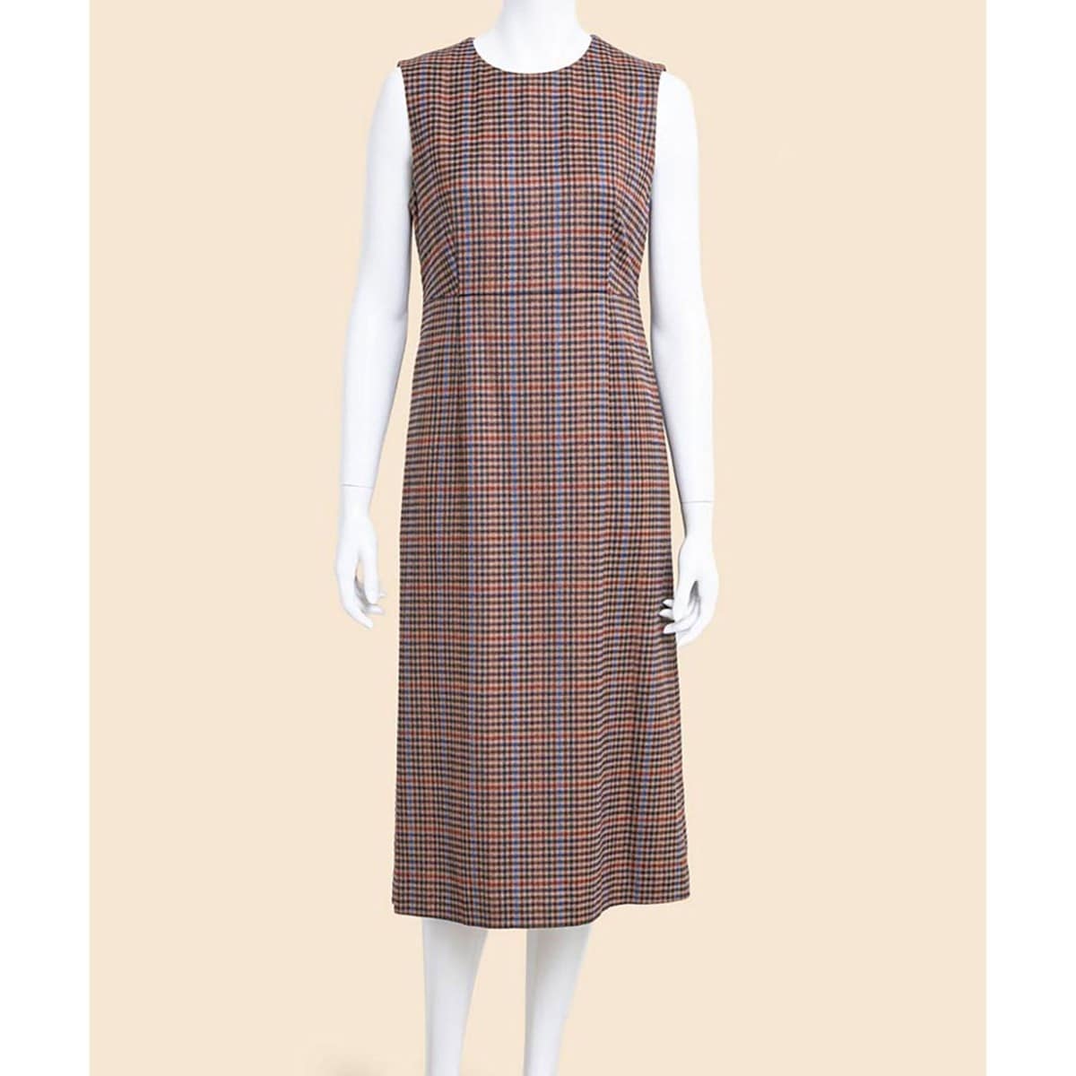 クラシックな佇まいのオリジナルガンクラブチェック柄の生地を用いて仕立てたノースリーブドレス