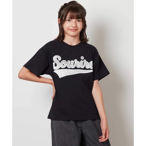 tシャツ ハート刺繍&ロゴプリントゆるTシャツ キッズ