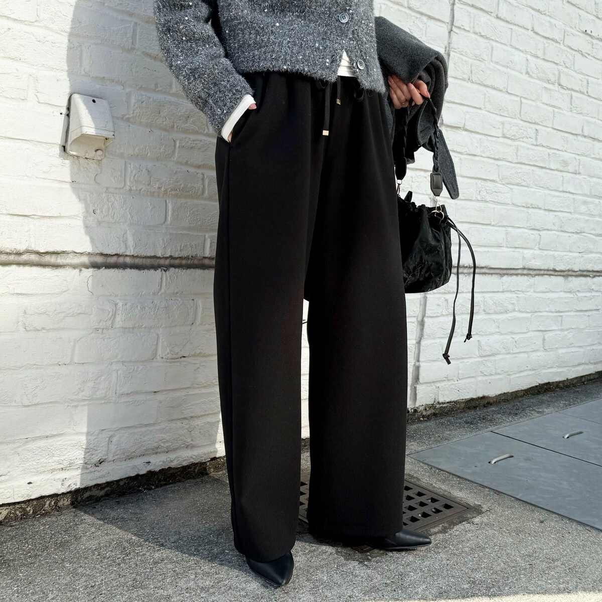 フラットシューズでもバランスよく穿ける丈感でした◎ウエストは締め付け感がなくとても楽で、伸縮性があるので一日中快適。脚のラインを拾わないシルエットで、どの角度から見てもきれいに見えるのが嬉しいです!