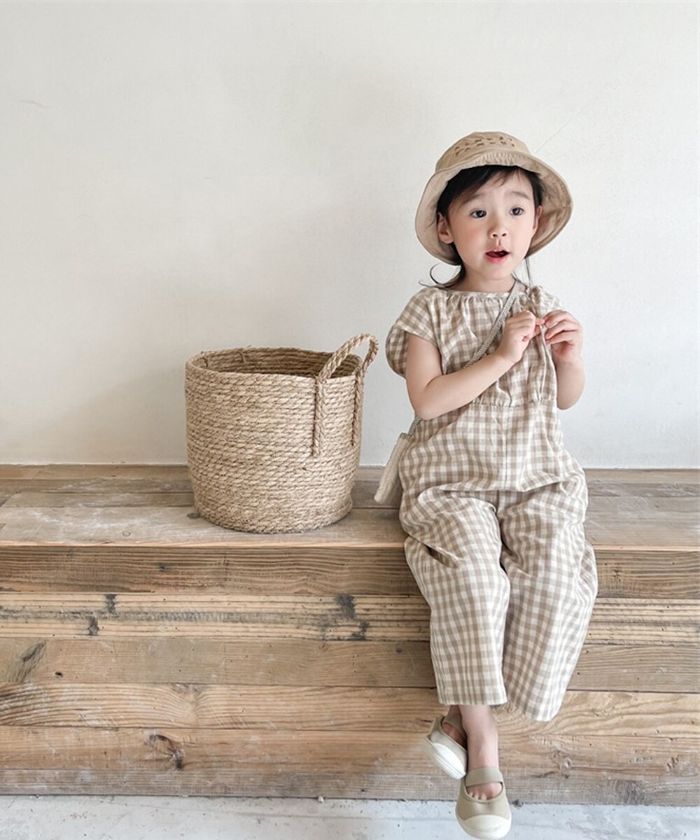 【 可愛いギンガムチェックのキッズオールインワン 】