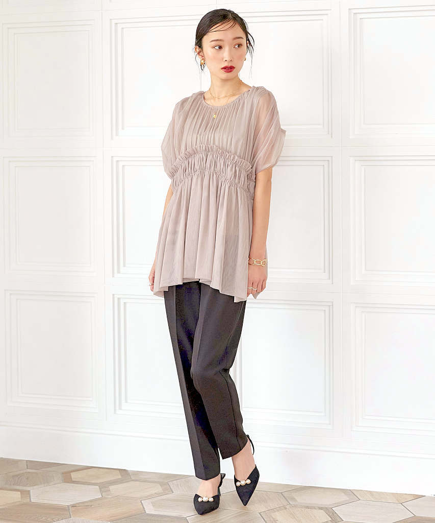 【S~3L】【洗える】シャーリングスクエアブラウス