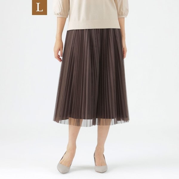 カジュアルにもきれいめにも着回せる大人のチュールプリーツスカート。