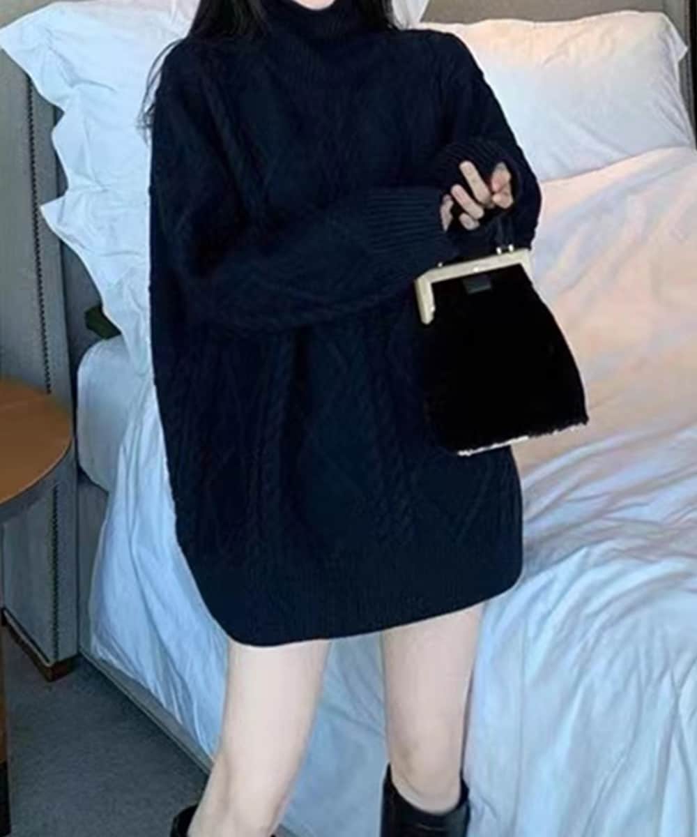 ケーブル編みで秋冬らしいミニ丈のワンピースです。