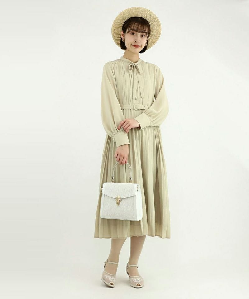 【セルフォード】 2WAY ボウタイ Aライン プリーツ ワンピース