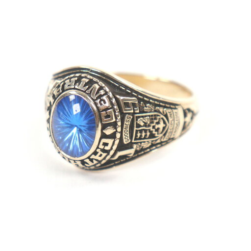 極美品□JOSTENS ジャスティンズ ヴィンテージ 10K カラージェムストーン CATHOLIC CENTRAL HIGH SCHOOL 1974年 カレッジリング・指輪 ゴールド ブルー 26号相当 重量9.12g メンズ