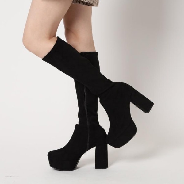 値下げ不可 「ラク盛り/ロングブーツ」リピーター続出/脚長美脚 厚底ヒールロングブーツ-スリムフィット レディース エスペランサ