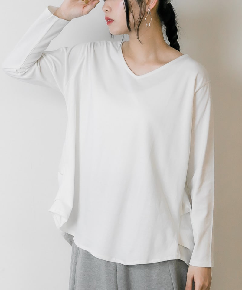 脇タックVネック長袖カットソー