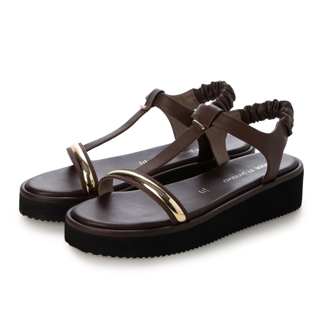 メタル使いがエレガントな印象を与える履き心地の良いサンダルです。中底スポンジはふかふかと柔らか、返りの良いソールを採用し、厚底でも歩きやすい設計。都会的でラフになり過ぎない1足です。
