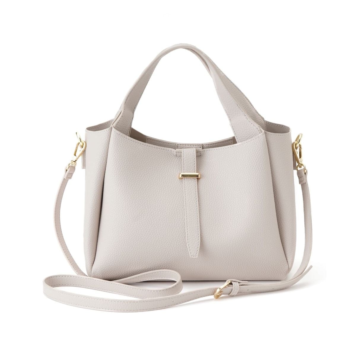 オンオフ問わず幅広いシーンに寄り添う、上品な2WAYトートバッグ。シボ感のあるリッチな風合いの合成皮革と、きらりと光るゴールドの金具が高級感を演出します。取り外し可能なストラップ付きで、その日の気分や服装に合わせてスタイルの変更が可能。マチが広く、長財布やポーチなど日常の必需品がしっかり収まるサイズ感も魅力です。通勤から休日のお出かけまで、シーズンレスで活躍する頼れるアイテムです。