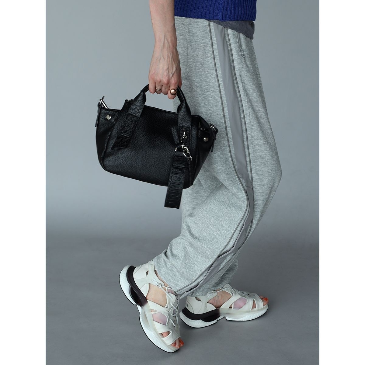 肩に負担がかかりにくい付属のショルダーベルトは、ムードや荷物量に応じてハンドバッグ、ショルダーバッグへとアレンジ可能。