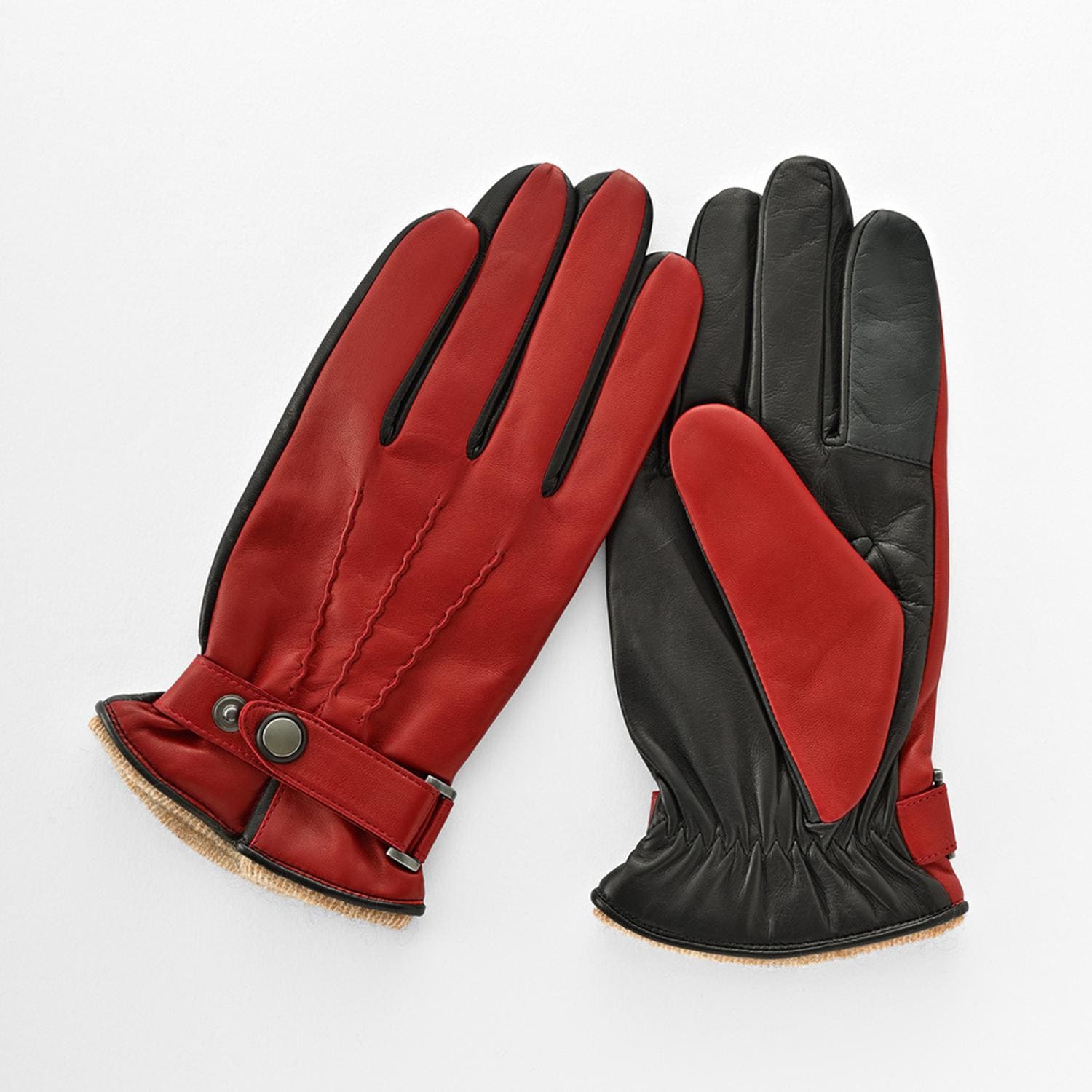 イタリア・ポルトラーノ社より直輸入した、イタリアンラムレザーを使用したベルト付きのグローブ。柔らかく使い込むほど手に馴染み、手にフィットした美しいシルエットを生み出す。親指と人差し指にはタッチパネル操作可能な導電革、インナーにはカシミヤ・ウールを使用。