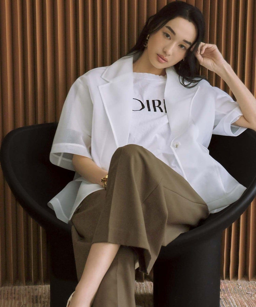 軽やかな透け感で重くなりがちなジャケットスタイルに、女性らしい抜け感を演出してくれます。