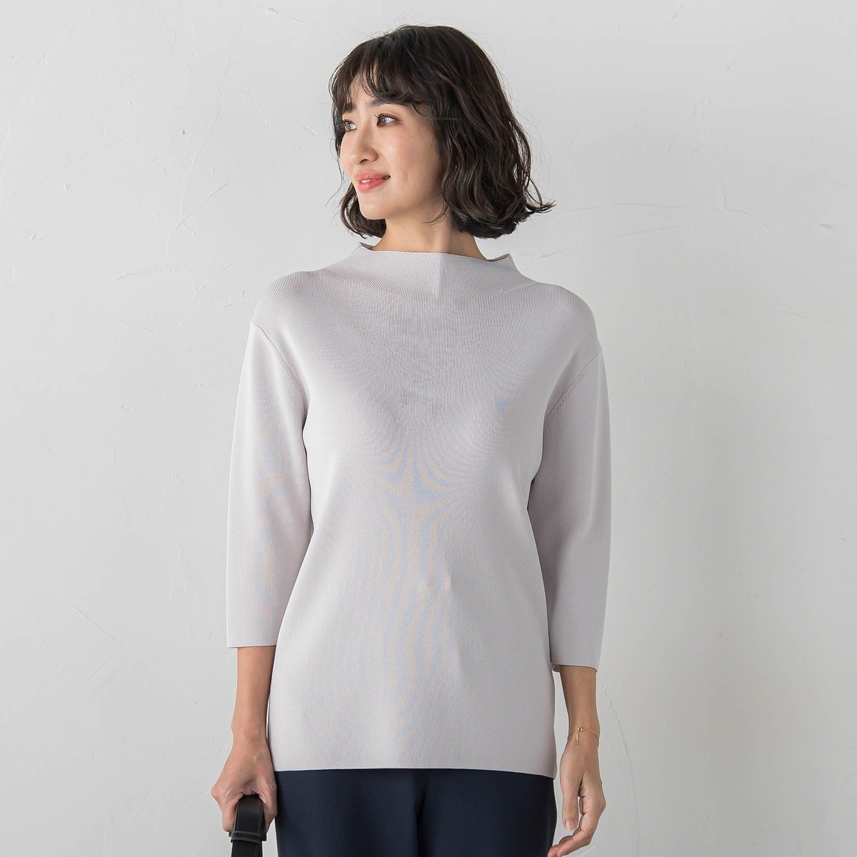 大きいサイズ 4L グレー 重ね着 リブニット モックネック
