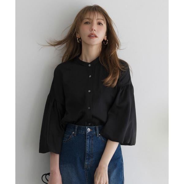 シャツ ブラウス レディース バルーンスリーブ ブラウス 長袖シャツ スタンドカラーシャツ トップス ボリューム袖