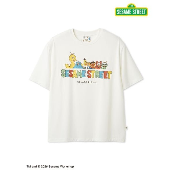 人気キャラクターが楽しそうに手を振っている、SESAME STREETらしいPOPなデザインのメンズサイズのワンポイントTシャツです。絵柄の下に、GELATO PIQUEのロゴもさりげなくプリント。本コラボアイテムだけのスペシャルな織りネームも付いています。色は合わせやすいオフホワイトとグレーの2色展開。ボトムには同シリーズの総柄ロングパンツがおすすめ。レディース、キッズ、ベビーサイズも揃えているので、ファミリーでリンク・コーディネートをお楽しみいただけます。