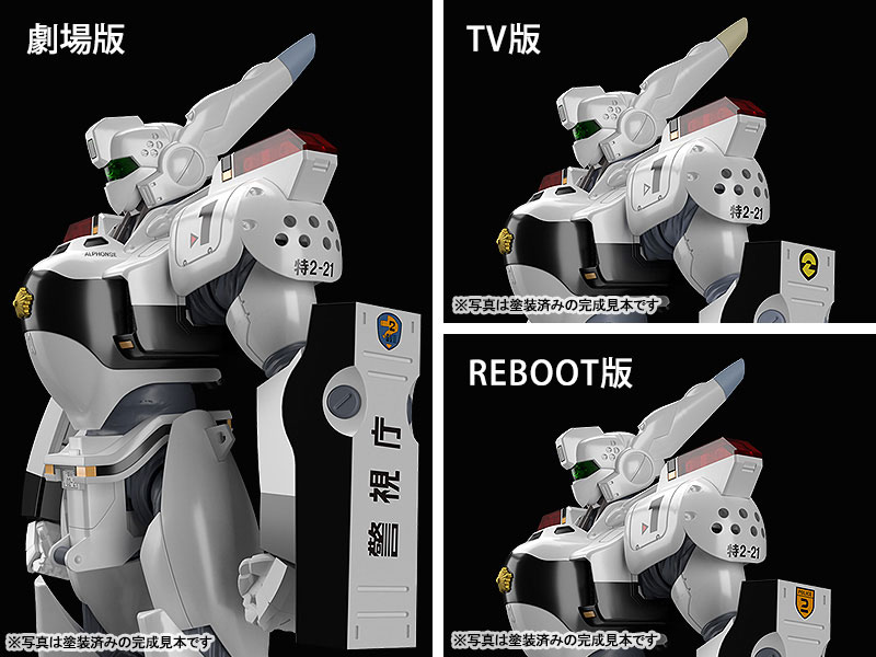 各関節可動、6連装リボルバーカノン、対レイバー用スタンスティック(長・短)をはじめとした各種武装が付属。
