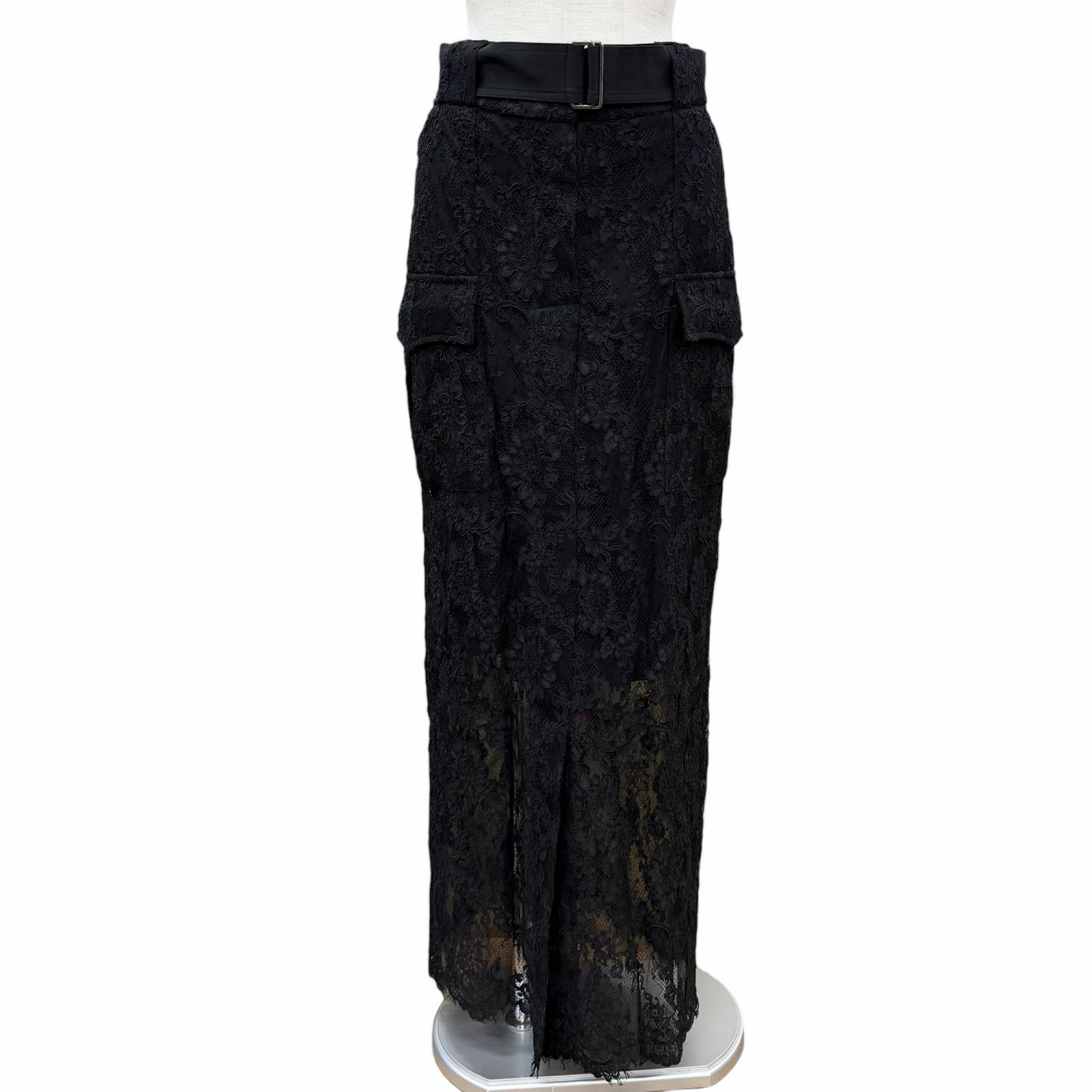 【ドンドン見直し】未使用品◇ERMANNO SCERVINO エルマノシェルビーノ D452O314BXD ベルト付き レース ロングスカート ブラック 38 ハンガー付き イタリア製 正規品 レディース 定価528,000円