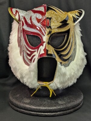 プロレスマスク マニア館製【初代タイガーマスク(金・銀タイガーラメハーフ×金・銀フチ)】 タグ付き