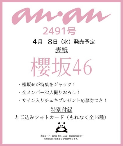 anan 2026年4月15日号 表紙 櫻坂46 応募券なし