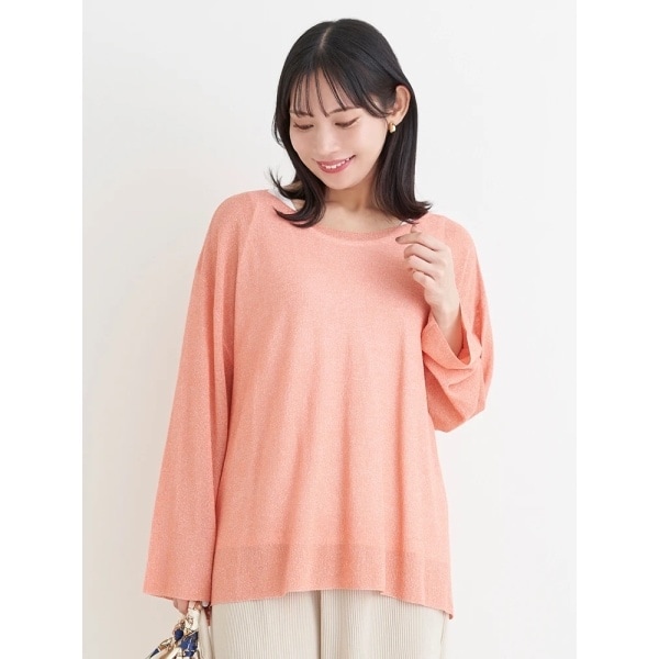 ・上品な輝きのラメ入りのニットはフェミニンな印象をプラス。