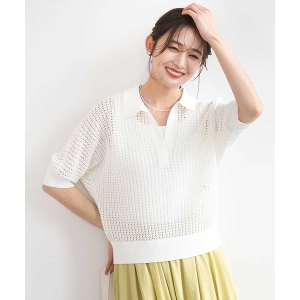 トップス 綿・コットン素材 / ニット素材 / ポリエステル素材 / その他柄 / 透かし編み / 半袖 / ドルマンスリーブ / 洗える / マリン・プール / Vネック / カジュアル / クロップド丈(トップス) / レギュラー丈(トップス)