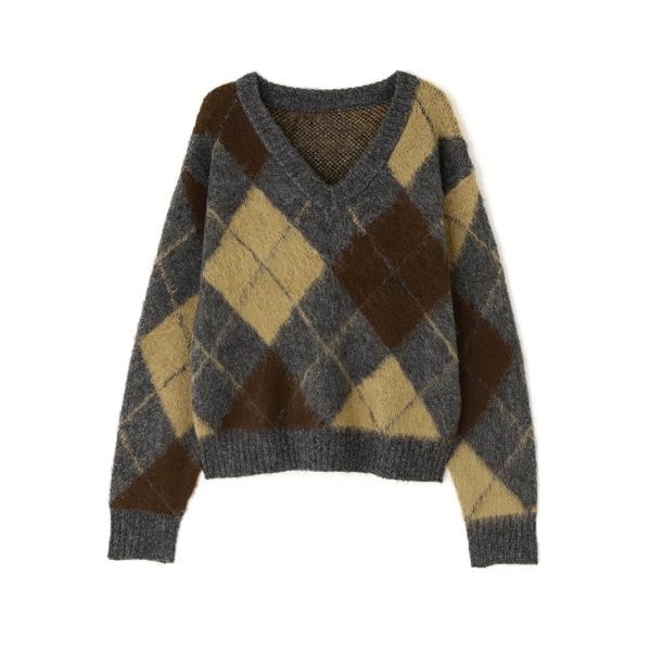 ジムフレックス ウール・モヘヤ混 アーガイルVネックニットプルオーバー