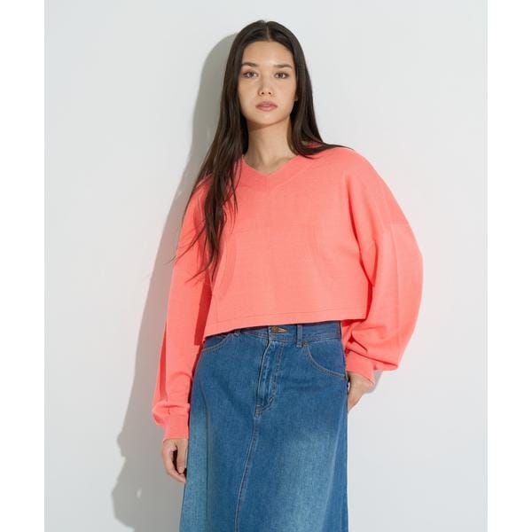 春らしいムードを纏える、クロップド丈のVネックニットトップスが登場しました。