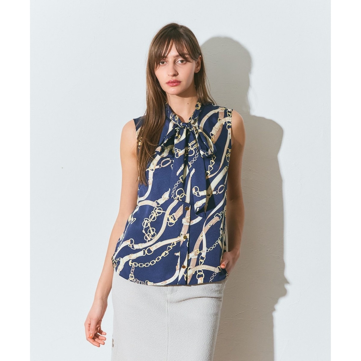 NARACAMICIE チェーン柄 ボウタイブラウス