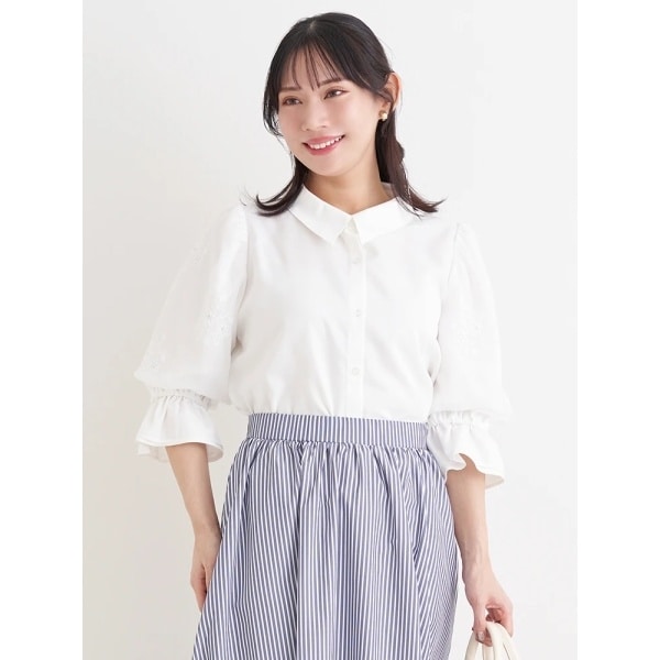 フラワー刺繍×シフォンの異素材使いのデザインがSWEETなブラウス。