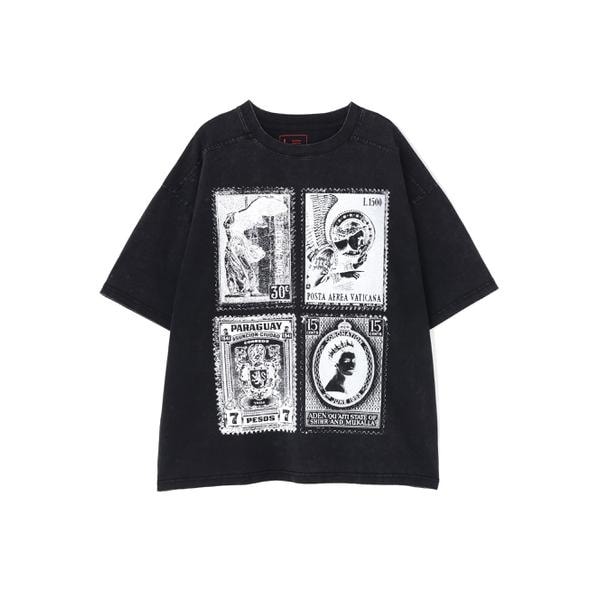 フロントにはアンティークの切手をモチーフにしたグラフィックを大胆に配置しクラシックなアートワークとストリートの空気感を融合させたデザインに仕上げています。