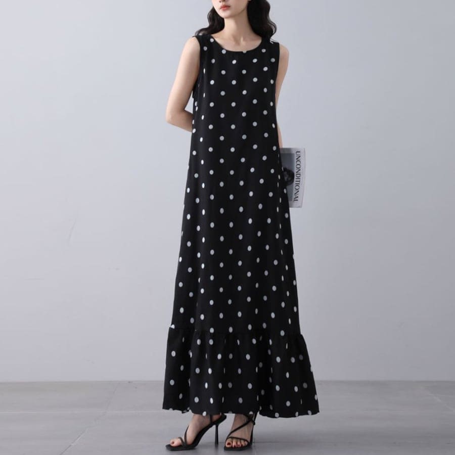 ドット柄ワンピース ノースリーブ