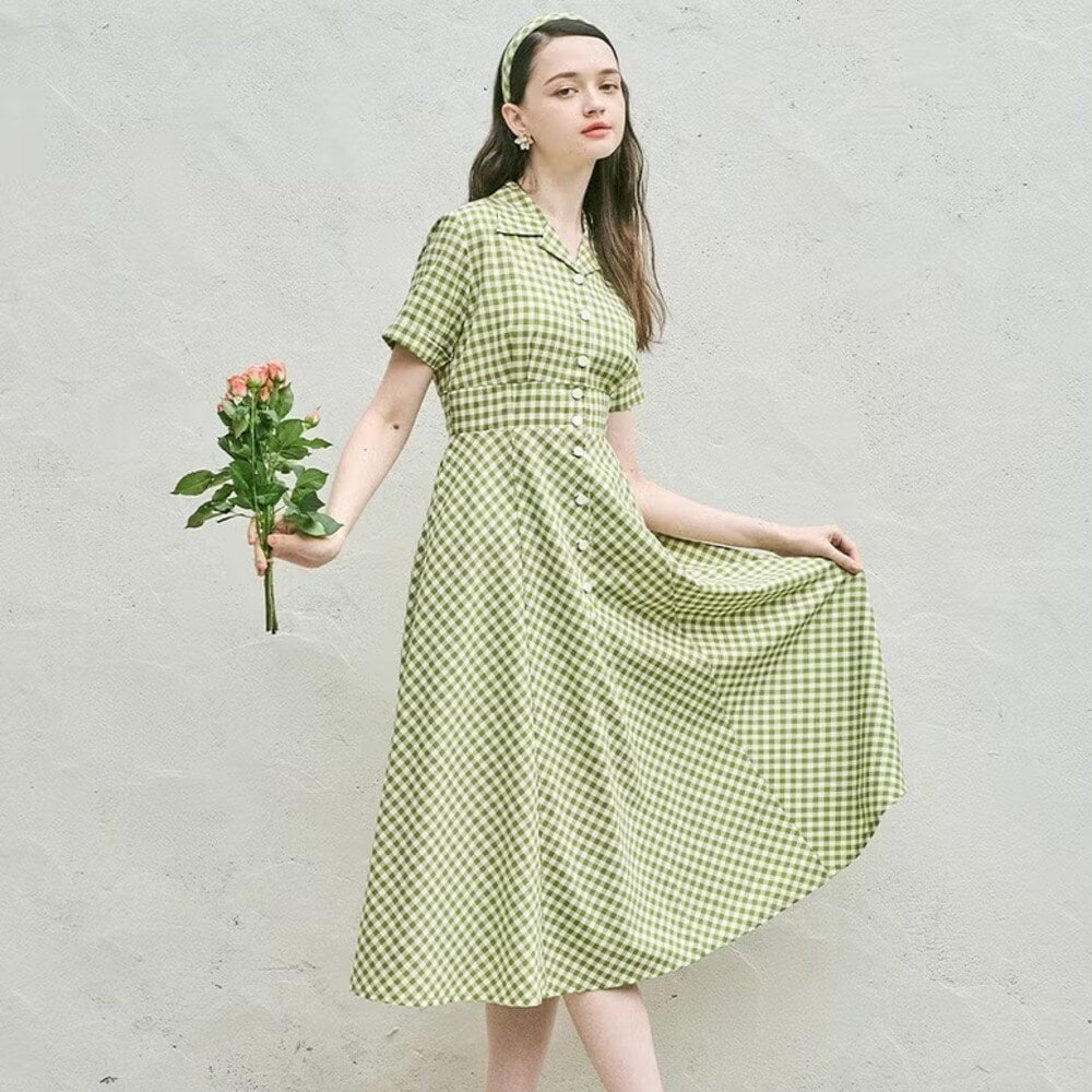 ギンガムチェック ワンピース 青 赤 レトロ 量産型