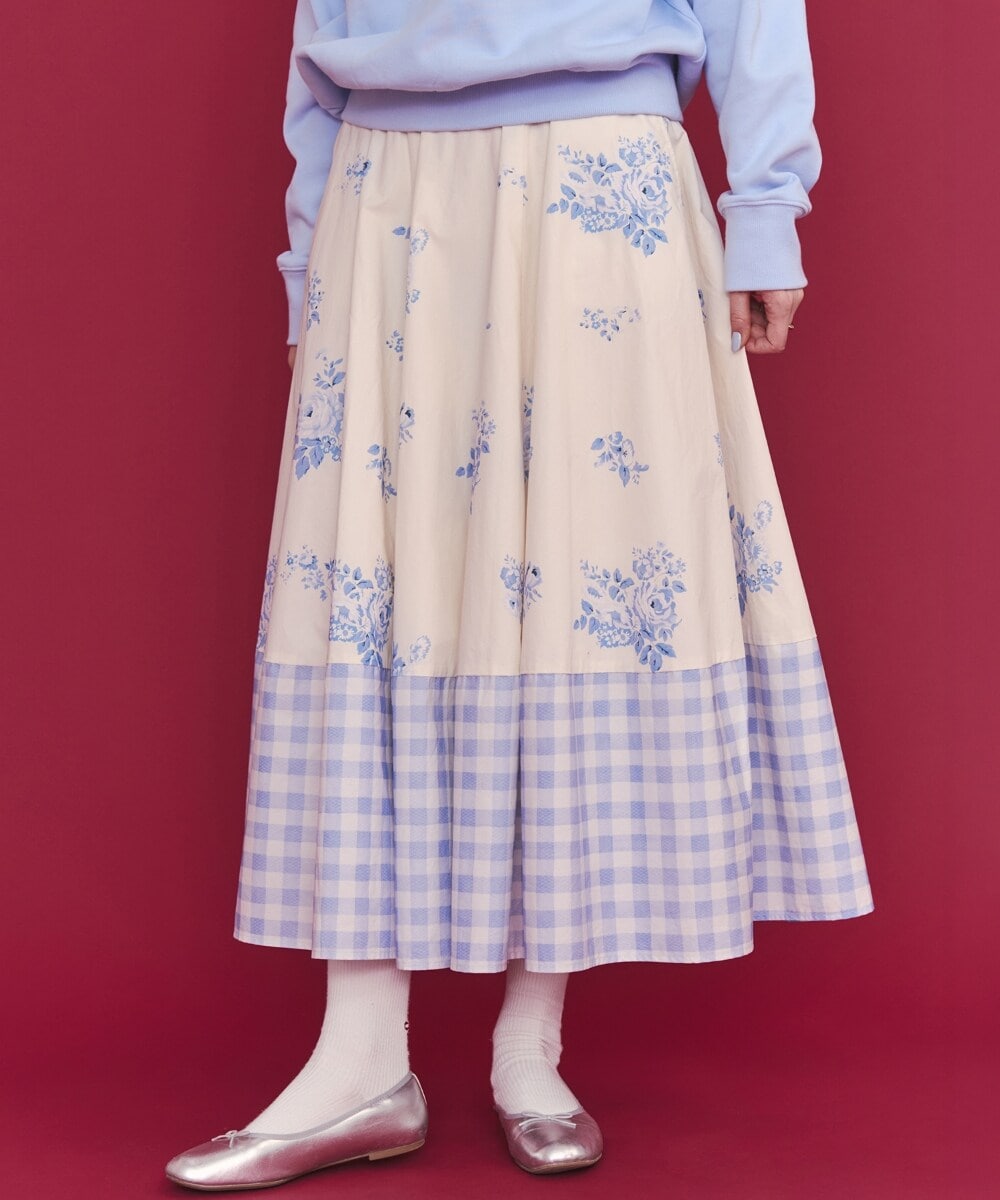 ボリュームたっぷりの贅沢なシルエットが目を惹く、主役級のフレアスカート。こだわりは、歩くたびに華やかに広がり、スタイルアップを叶えてくれるシルエット。ハリ感のある素材で、より美しく立体的なラインを実現しました。 また、お客様の声を反映し、これまでのモデルよりも着丈を少し短くアップデート。より着やすくなりました。後ろウエストはゴムギャザー仕様にしているので、ストレスフリーな着心地なのも嬉しいポイントです。バリエーションは、個性豊かな3つのラインナップ。・単柄Bows&Rose:トップスを選ばず着こなせる、上品でクラシカルな花柄。・2柄ミックス:花柄とチェックを組み合わせ、いつものスタイリングに新鮮な表情をプラス。・3柄ミックス:キャス キッドソンの世界観を詰め込んだ、唯一無二の個性的なデザイン。同柄のボウタイブラウスを合わせれば、セットアップ風の華やかな装いに。スウェットやニットなどベーシックなアイテムとも相性が良く、日常のコーディネートをクラスアップしてくれる一着です。